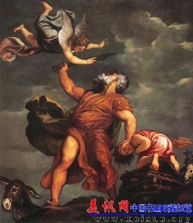 千钧一发之际,上帝明白了亚伯拉罕太赤诚了。命令天神抓住了就要落下来的刀......
