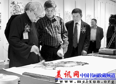 图为台湾岭南美术馆荣誉馆长欧豪年大师现场作画。