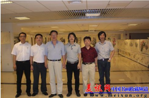 左起: 广信商业中心代表李成斌, 金秋画院名誉院长张云, 原中共广州市委统战部副部长王玉春先生, 金秋画院院长李锋卫, 金秋画院主席陈东升, 书画家聂红林