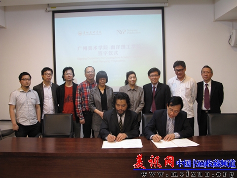 4月13日,新加坡南洋理工学院陈利民院长一行五人访问了广州美术学院,并与院长黎明签署了两校谅解备忘录和合作协议书。国际交流处张美琴、视觉与动漫设计学院黄树忠、陈小清教授等出席了签字仪式。
