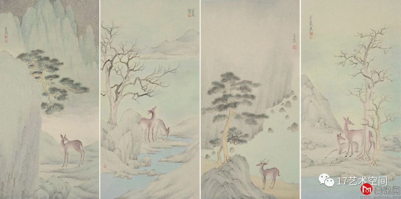呦鹿图 2019 纸本 34x68cmx4 局部1