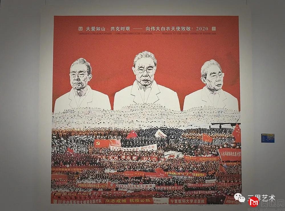 四、形式多样。这次展览展出的200余幅作品,涵盖了中国画、油画、雕塑、版画、书法等各个形式门类,反映了不同形式在重大主题创作中的优势特点。如著名画家郭震乾的版画作品《大爱如山》,深入刻画了抗疫英雄钟南山高大艺术形象,以及以医疗战线为主的社会各界支援武汉的群体场景,深刻揭示了全国人民举国同心、风雨同舟、众志成城夺取抗疫胜利的思想主题。