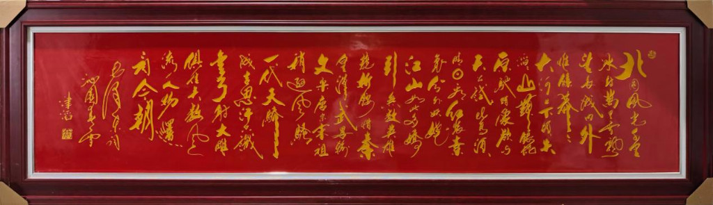 高津滔的艺术早已超越个人创作,成为国家文化外交的“金色名片”。他的作品被联合国总部金色大 厅长期陈列,四条屏《长相思,心相印,老来红,人长寿》以书画合璧的形式,向世界传递中华文化的温 情与哲思;70米长卷《心之力》在maozedong诞辰纪念展 上震撼亮相,以恢宏笔势书写民族精神。作为“一带一路”文化使者,他的作品被赠予各国元首,景德镇 瓷艺大师更将其书画烧制成陶瓷国礼,让中国艺术融入世界日常生活。