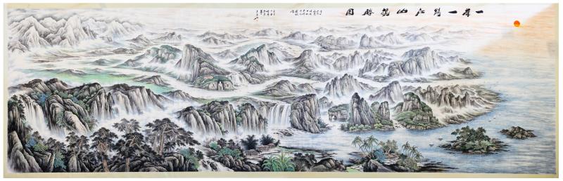 他的情怀,源于对灾区的关注——他经历过汶川、芦山和九寨沟地震。他多次带领艺术家深入灾区慰问采风,创作的重建家园主题作品成为精品之作。九寨沟发生地震后,《西游记》经典取景地诺日朗瀑布发生垮塌,让人惋惜不已,巧合的是,在地震前,吴长江就将写生的这一美景呈现在了画作之上,留下最美的诺日朗记忆。最近,这幅山水画正在四川省人大会议中心锦江大礼堂展出,吸引着众多藏家慕名观展。最近展出的一幅《熊猫海》,是地震后,根据采风记忆,再现大熊猫来这里喝水、嬉戏的场景,通过国宝之魅力向世人展示四川依然美丽。吴长江始终相信,和自己作品所表现的一样,四川人民定会以自强不息、感恩奋进的精神建设美好新家园。
