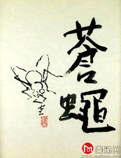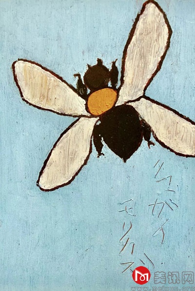 熊谷守一在随笔集 《苍蝇》里说:“展览会中没有被买走的‘苍蝇’二字,其实写得蛮好。我觉得‘苍蝇’的形体富有美感。然而,一般人并不这么想。生病时,苍蝇在地板四周‘嗡嗡’地飞动,我就觉得特别有精神。这时,没有了它们,我就感到寂寞了。‘苍蝇’二字,既可以写成精力充沛的,也可以写成无精打采的。因为苍蝇也有带劲和不带劲的时候。”把“苍蝇”二字郑重其事地写成一幅书法,体现了熊谷守一周身饱含着齐物而观的“平常”又绝不从俗的“反叛”。