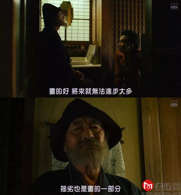 影片中,当记者拿着自己孩子画的一张满纸圈圈的画给熊谷守一鉴赏时,是有所期待的,他认为是抽象画,不希望小孩的绘画天才被埋没了,这也是“可怜天下父母心”的共同期待。而熊谷守一却说:“非常拙劣”,转而补充道:“拙劣也是绘画的一部分”,在熊谷守一看来,蹩脚也是画,有才华的人不一定走得远,画得好,就无法进步太多了。