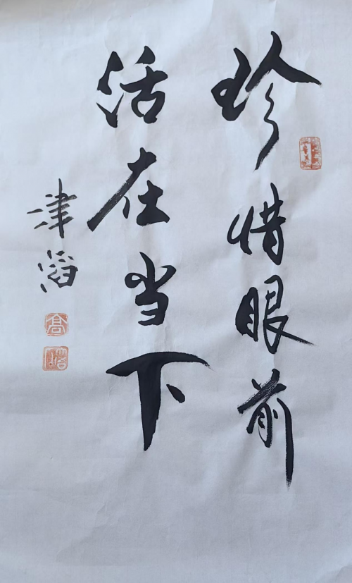 高津滔先生常说“书法要做‘孩子’”,这“孩子”不是懵懂,是对“诚”的纯粹——他不用老辣装深刻,偏以稚拙见赤诚;不用规整显功底,偏以错落见真心。那“红色”里的涨墨,是历史的“诚”;那“游子”里的纵逸、“归心”里的沉厚,是当代人“传诚”的完整轨迹——这不是写出来的字,是活出来的精神:从先辈心里,到先生笔下,再到每个“传诚游子”的行履与归途中,成为永不褪色的初心。