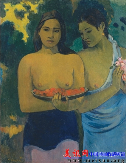 《两个塔希提妇女》估价8000万美元,此次事件中并未受损,并于昨日(周二)重新回到《高更:神话制造者》的展览中。该画描绘了两个妇女并肩站立,一位裸露着两个乳房,另一个裸露着一个。