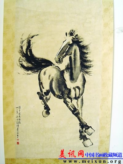 当从朋友处听说有人手上有幅徐悲鸿的《奔马图》愿意出让时,对名家精品向来敏感的方先生立即产生了浓厚兴趣。展开画的一瞬间,这扬蹄奔跑、脚下生烟、鬃毛高扬,充满昂扬斗志的奔马立即以满纸的精、气、神打动了方先生。还好,买家的开价尚在自己的承受能力之内。于是,爽快成交。