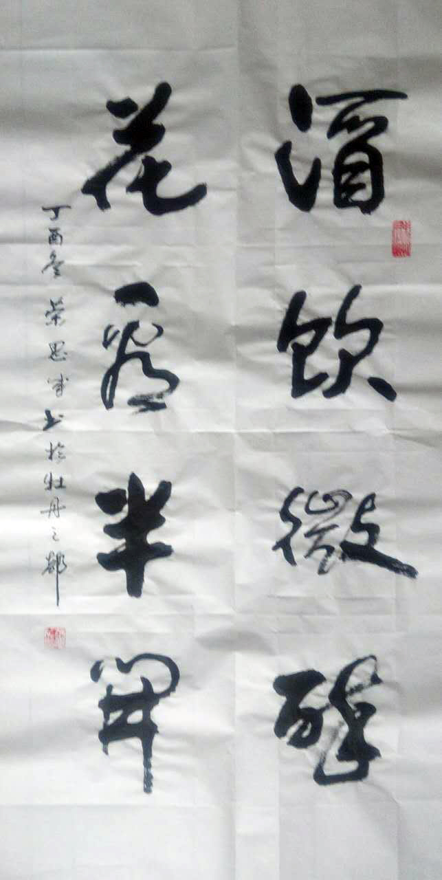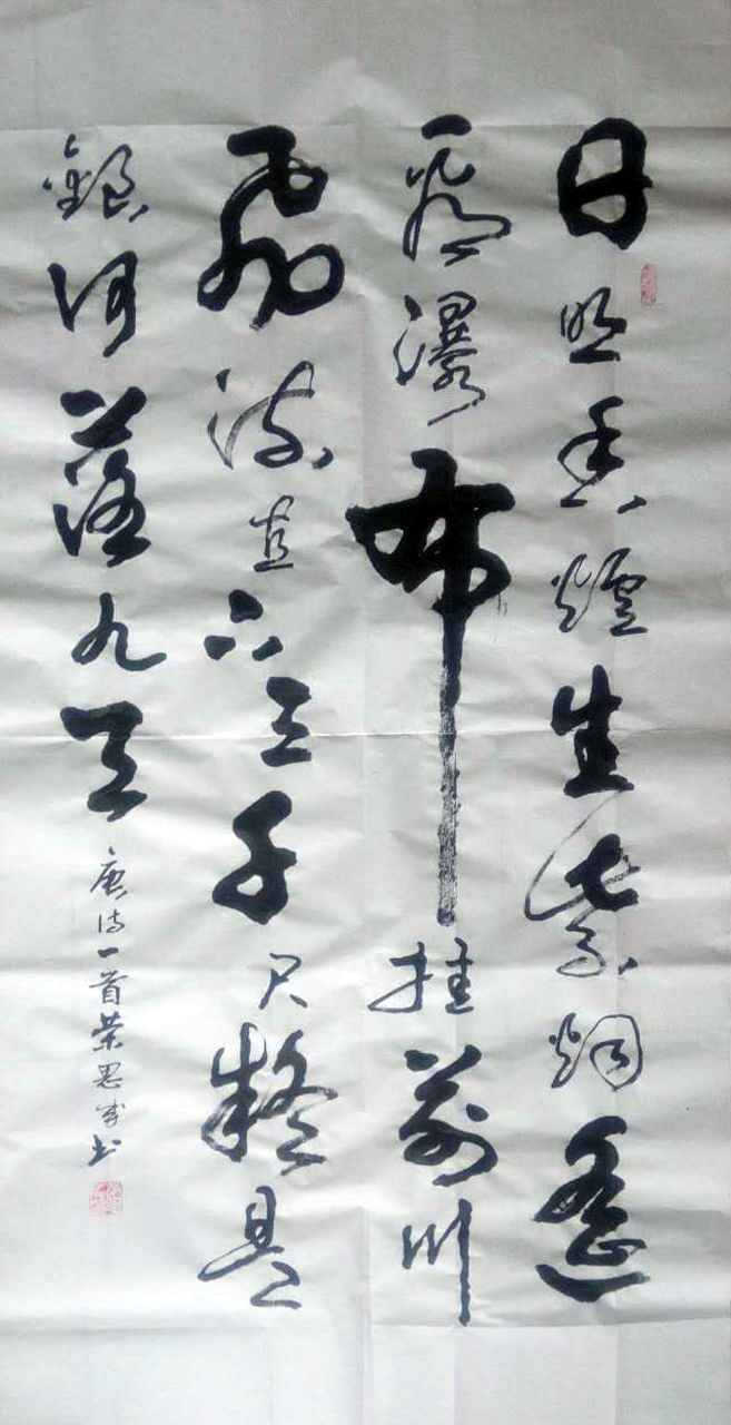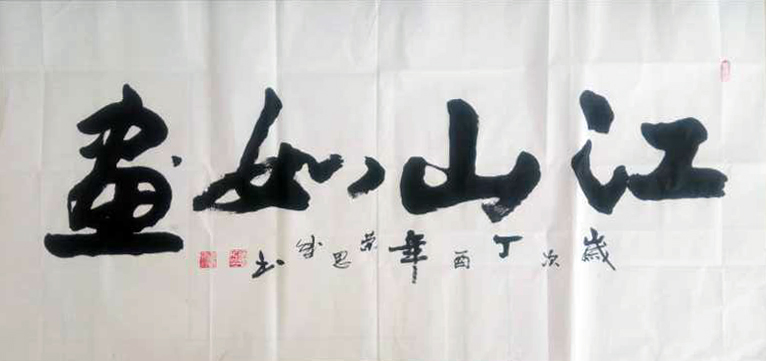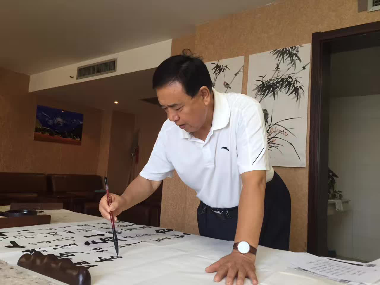 自幼酷爱书法,注重传统,临名帖、学名家、醉心于艺术,论笔法其书法:点、线、面、飞白、渗化参互调用得心应手,提按使转运用自如。论章法其作品布局严谨,造型美,大气豪放,字体遒劲有力。行笔奔放潇洒,笔法精到,笔意丰富。几十年来心存书法梦,无论从军十三载,还是公安工作三十年,工作的调动,环境的改变始终执着于书法艺术。
