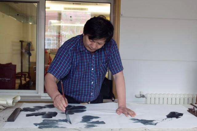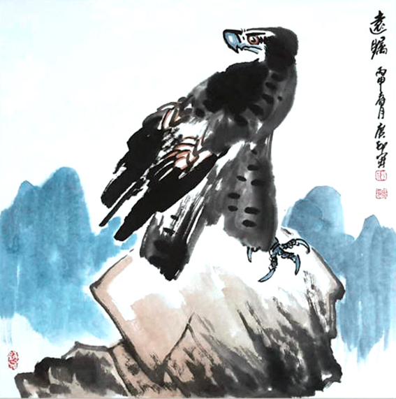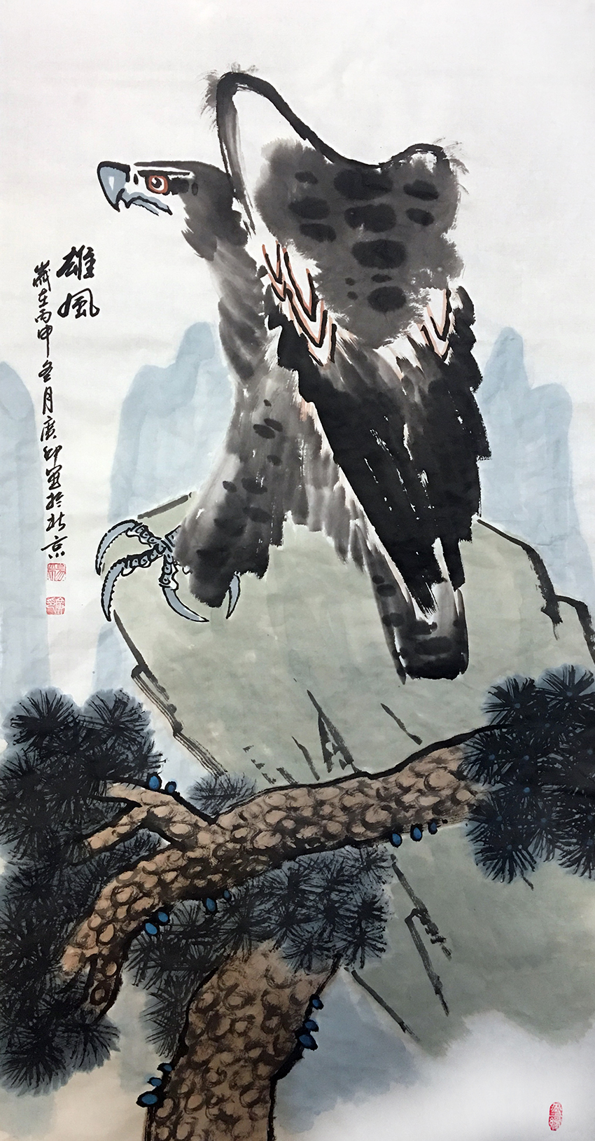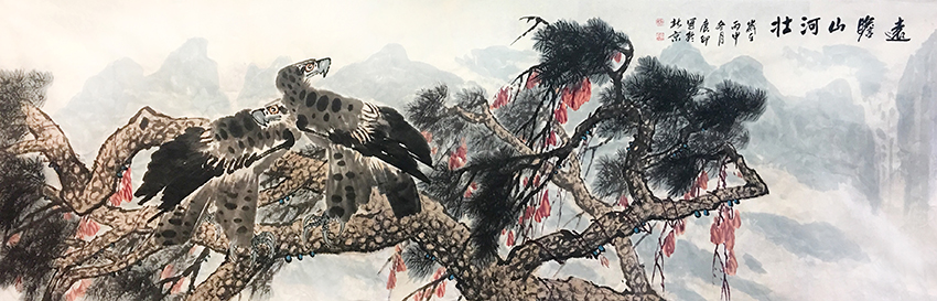 (杨广印先生作为山西卫视特邀嘉宾绘制中国画作品《雄风》)