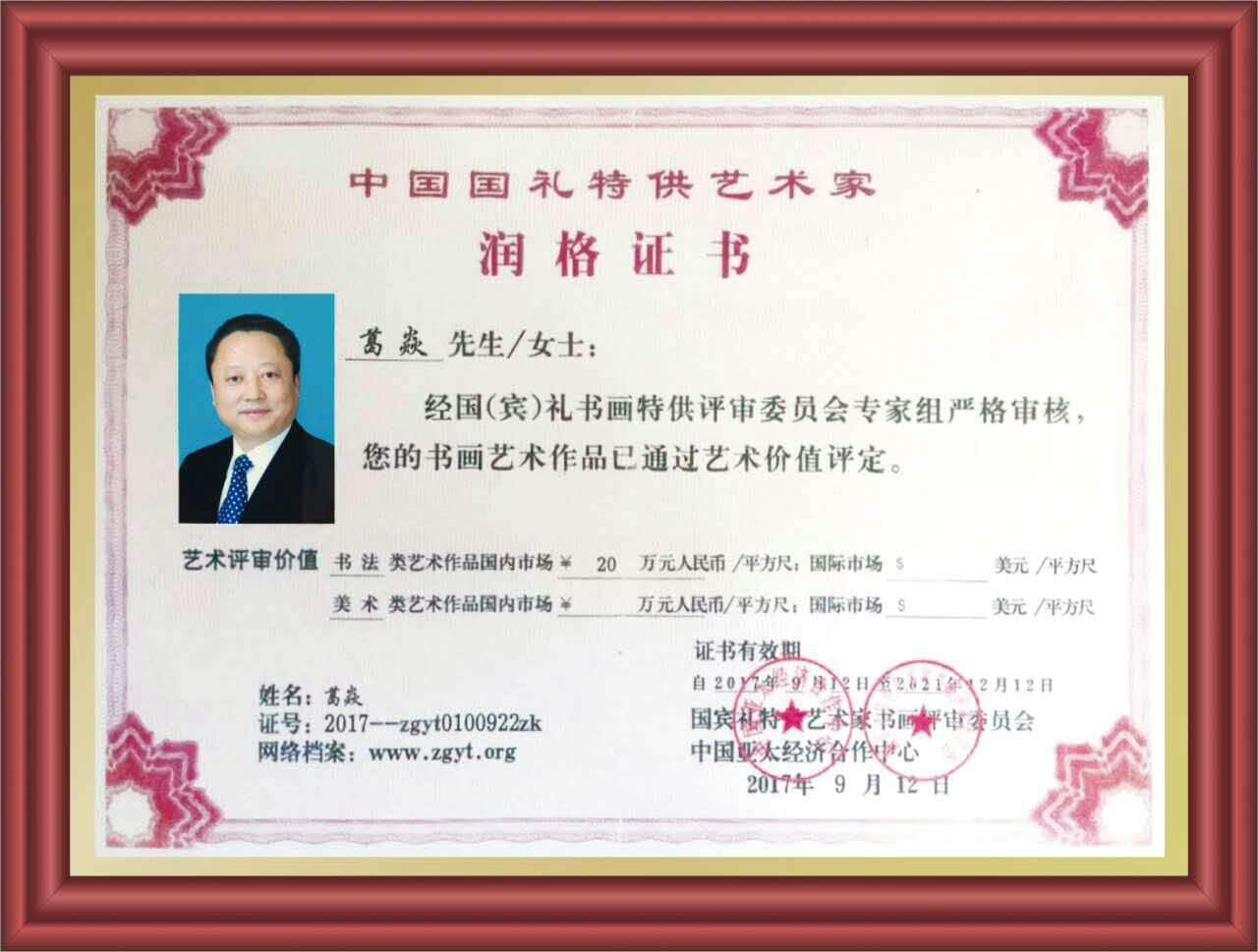 其作品多次参加全国书法展并获奖,曾作为国礼赠送给国内外友人,并被日本、韩国、美国、加拿大、新加坡、法国、意大利、西班牙、瑞典、阿联酋、南非、蒙古等国政要、名人收藏。