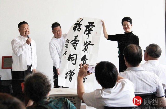 奥运火炬手、著名书法家贾国强先生为大家展示了2008年奥运火炬和女排夺冠的现场国旗,并向活动赠送了书法作品,为大家送上了“群贤集雅,福寿同增”的美好祝愿!