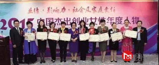 北京大学工学院院长张东晓、中国妇女报社总编辑孙钱斌为“2015中国十大杰出创业女性年度人物”获得者颁奖。右二为文燕