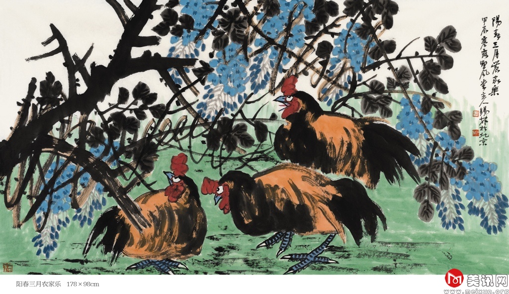 潘锡林的艺术生涯丰富多彩,历经多个阶段的磨砺与沉淀,逐渐形成了自己独特的艺术风格和创作理念,具有学养、笔墨、气韵之大境,得传统文人画的精髓,是享誉当代画坛的大写意花鸟画家。他大胆用笔,精心布色,作品有磅礴浑然的气势,淋漓恣肆的笔墨,豪放大气的画风,别具匠心的章法,师法古人而不被前人风格所拘,使他在大写意花鸟画独标新举。