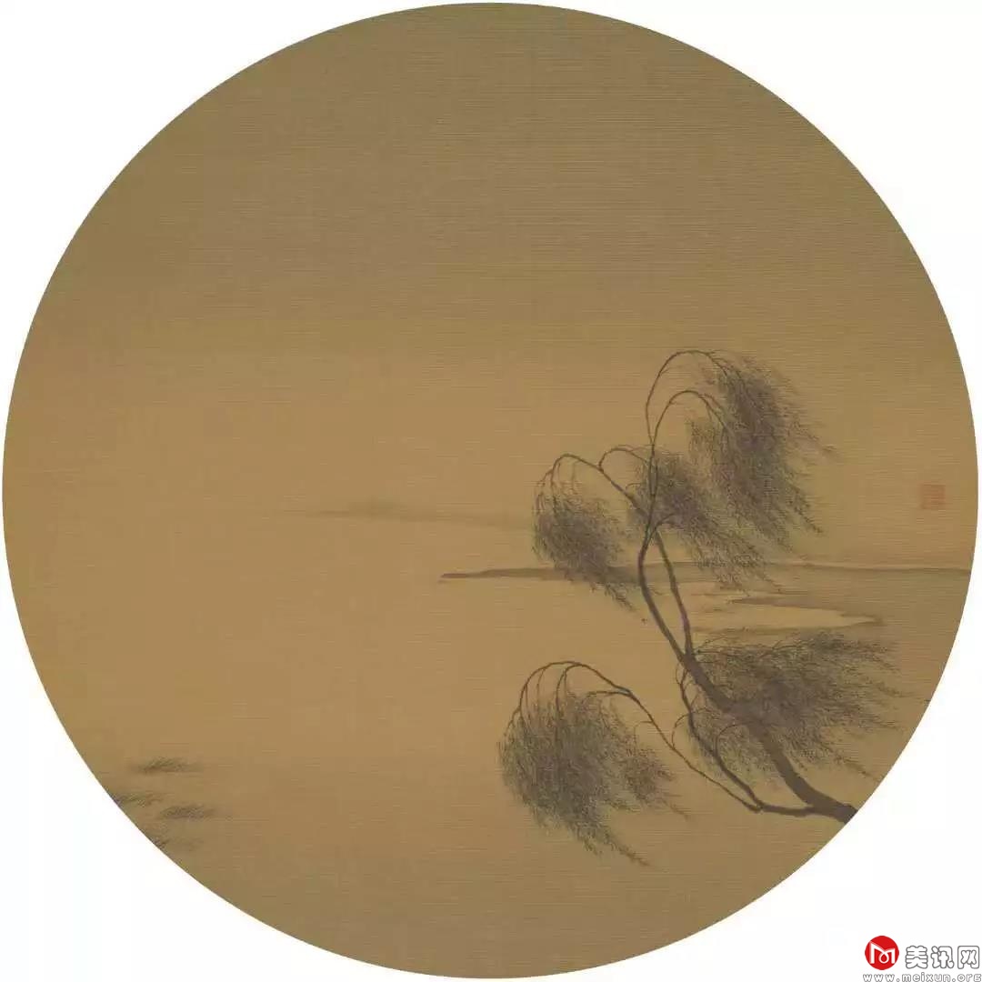 杨梵《柳溪》直径33cm 2016 绢本水墨