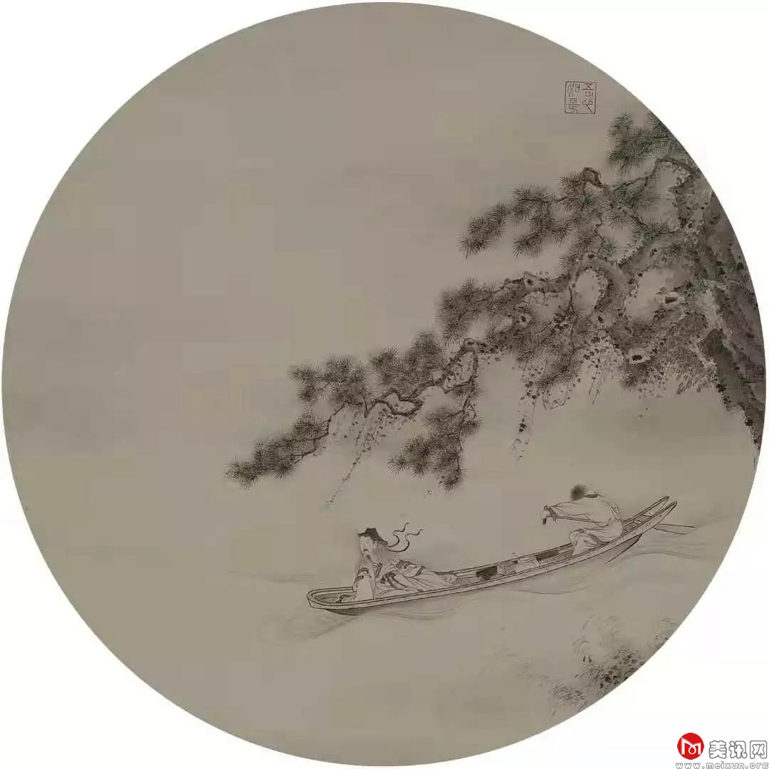 杨梵《松溪泛月》直径33cm 2015 绢本水墨