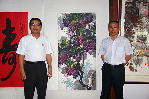 在周守涛董事长的陪同下,钱文超总经理来到美讯时代旗下的美讯美术馆,在一幅幅精美的书法、美术、摄影作品前驻足观看询问,对书画艺术产生了浓厚的兴趣,对美讯时代在书画艺术领域所取得的丰硕成果给予了充分肯定。在交谈中,周守涛董事长表示,建设美讯美术馆是为了有效的丰富书画爱好者业余生活,增强企业的凝聚力,更是为了推动中国传统文化的繁荣和发展。在长时间的交流后,钱文超总经理也表示期待日后与美讯时代的进一步合作,希望美讯时代继续巩固好当前良好的发展势头,努力实现新跨越。