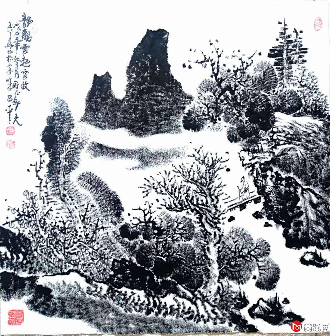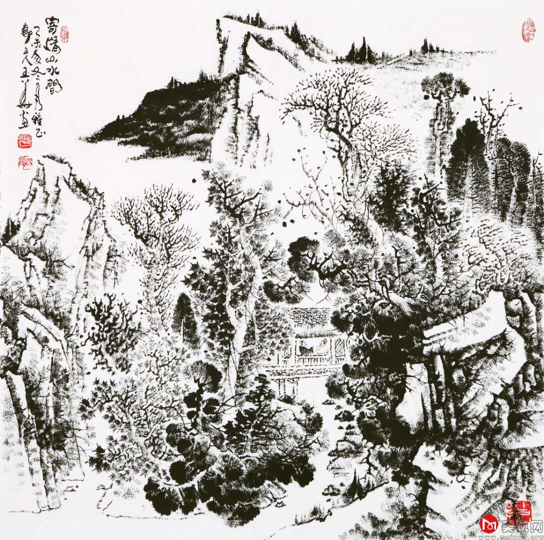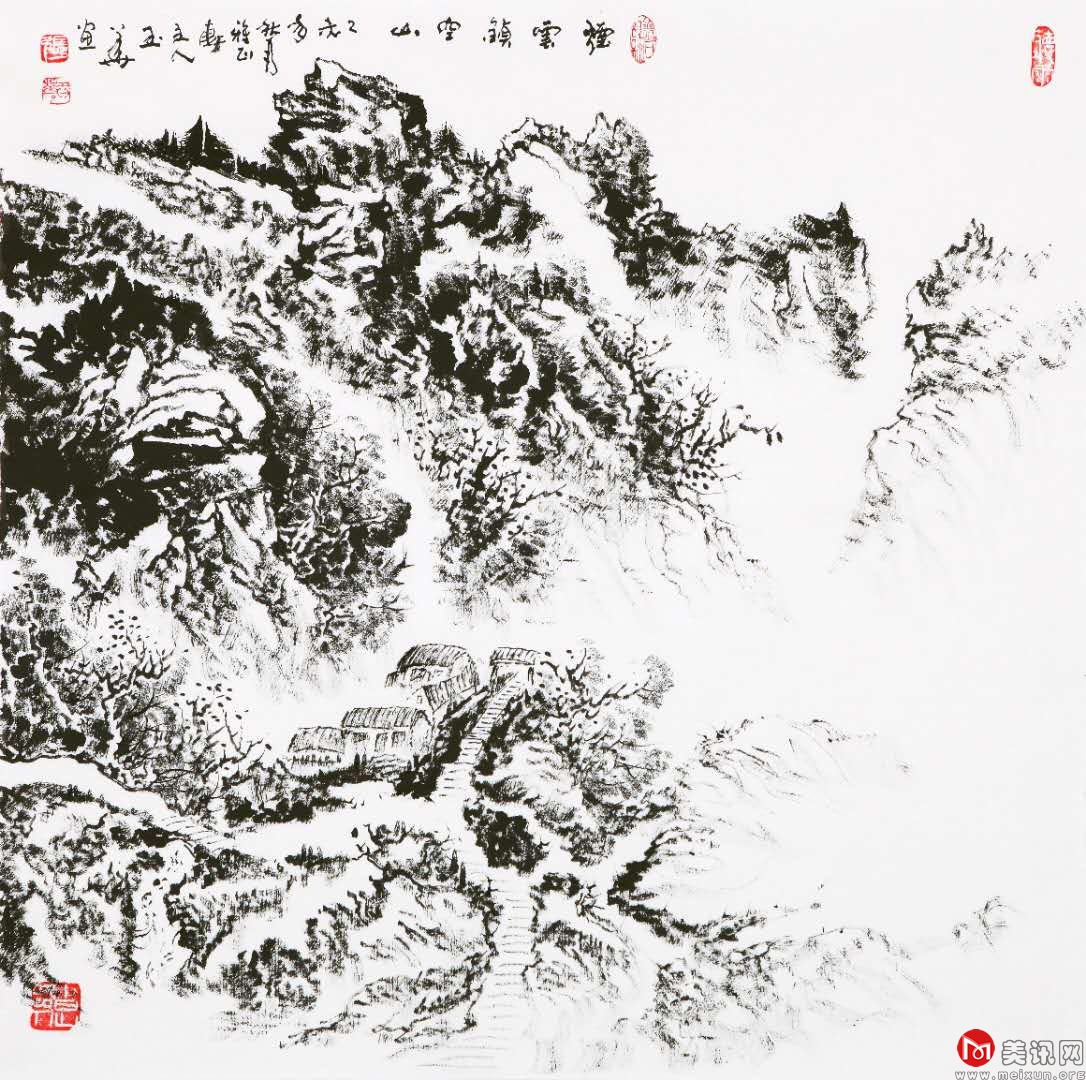 笔法中有悠扬顿挫,张玉华老师把顿笔加以衍生,形成独创的顿笔皴法 ,解决了焦墨山水画中最难表现的面虚实关系。并得到张仃老师的认可,在焦墨山水的路途中创造了新篇章。