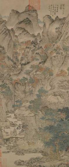 《葛洪移居图》轴,元,王蒙作,纸本,设色,纵139cm,横58cm
