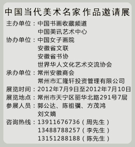 而今,为了积极响应党中央文化大发展的号召,弘扬中国传统书画艺术,加强书画合作交流,促进社会各界健康和谐发展,由中国书画收藏频道、中国美讯艺术中心、常州安徽商会、常州市汇隆轩投资管理有限公司联合组织的情系常州·中国当代书画名家精品展将于7月9日在常州拉开帷幕。