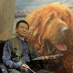 林跃,1961年出生,原籍山东,1987年四川美院绘画系毕业,现任四川美术家协会副主席,西南民族大学客座教授,四川省艺术创作交流促进会副会长,四川省长江画院油画院院长。 林跃专以藏獒为创作题材,在近十年中他创作出了非常丰富而深刻反映藏獒生活的艺术作品。由于林跃深入的表现出了藏獒的忠诚、坚韧、威严及矫健。使林跃的藏獒油画具有了深刻的象征意味。他的作品不仅体现出了当代的核心价值观——忠,同时体现出他对生命的关怀——爱,而林跃油画中所表现出的有关生命母题的哲学基石——和,更是与时代相契合的一种对生命>>>