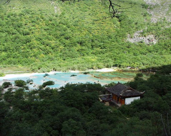 黄龙风景名胜区,位于四川西北部阿坝藏族羌族自治州松潘县境内,是岷山山脉深处玉翠山中一条南北走向的7.8公里长的谷沟,海拔3000米以上,是中国地势最高的风景名胜区之一。从岷山顶峰流下的雪水汇聚成溪,沿石钟乳山坡倾泻而下,跌宕起伏,形成众多的瀑布悬流……