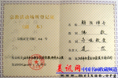 朝阳禅寺相关证件