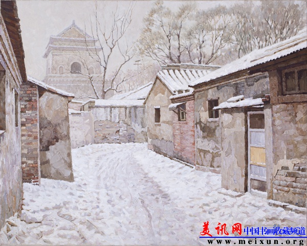 王良武2004年作品《鼓楼西大街雪景》120×100㎝