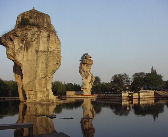 天下第一石: 高31米,底围4米,最薄处不足1米,其形状上丰下削,底脚细如锤子倒立。