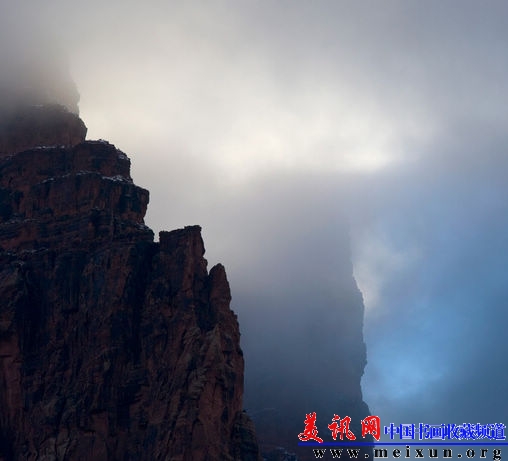 暴雨云,大峡谷国家公园。亚利桑那州的大峡谷国家公园,位于Point Hansbrough 附近,暴雨云的空隙令被覆盖的悬崖得以展露。