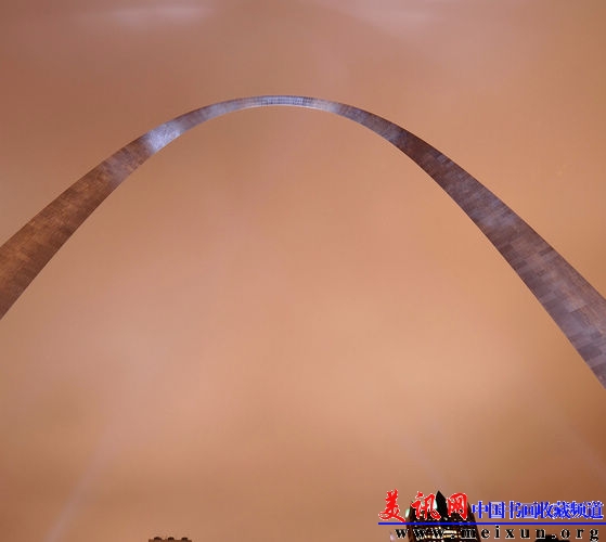 大拱门,圣路易斯。剧院式的灯光给大拱门的表面镀上了一层夜晚的光辉。