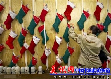 驻伊美军女兵偷看袜子里的圣诞礼物
