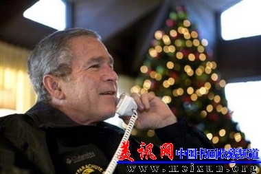 中新网12月25日电据美联社报道,在一张白宫提供的照片中,布什总统12月24日在戴维营打电话给美军士兵,庆祝圣诞节日快乐。(春风)
