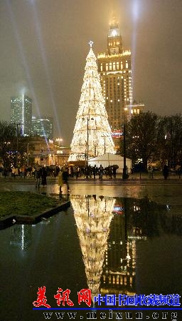 12月6日晚,坐落在波兰首都华沙的一棵巨大圣诞树举行开灯仪式。这棵圣诞树高72米,共使用了180吨钢材,200万盏灯泡,其中最大灯泡直径1.5米,装饰的彩带长18公里。