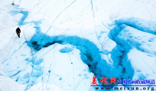 “我们与自然之间的那份羁绊正缓缓被侵蚀。此照片拍摄于阿根廷巴塔哥尼亚贝利托莫雷诺冰川。冰川是地球健康的指示器,然而许多古老的移动冰川正在因为气候的变化而日渐萎缩。最初吸引我来到此地的便是那蜿蜒流淌的冰水。当我们的导游试图检查冰川是否完整而走入这一幕时,我捕捉到这幅场景。画中的人物给观众带来了一种层次感并使此照片变得完整。”