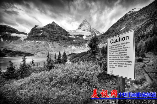 “自从几年前我第一次看到Wedgewood山峰后那薄雾笼罩下的阿西尼博因山时,我就深深地迷恋上了她。我已经无法用言语表达我内心的情感,我感觉到这块神秘的土地对我的召唤,我渴望一次又一次地回到这里。在广阔的加拿大洛基山脉中,阿西尼博因山壮观的景色和自然之美是极为罕见的。我一直对作品采用彩色还是单色调犹豫不决,但是我感觉黑白色可以通过色调的深浅对比更吸引人们的视线。这是我最喜爱的一副阿西尼博因山图。”
