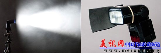 即使将闪光灯变焦到长焦端,仍然有大量光线向周围扩散开来。一片小小的遮光片就可以限制这种情况