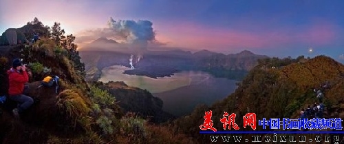 对于新加坡摄影师亚伦·利姆·布恩托克(Aaron Lim Boon Teck)来说,一次中途取消的徒步旅行却成了一次千载难逢的摄影机会,他的作品“林查尼火山喷发”摘得2010年美国《国家地理》国际摄影大赛自然类桂冠。林查尼(Gunung Rinjani)火山是位于印度尼西亚龙目岛的一座活火山。布恩托克在作品介绍中说:“徒步旅行者适时地占据了大坑边缘,并在那里安营扎寨,拍摄持续整晚的火山喷发。我希望与每个人都分享这种体验,目睹许多元素在某个时间点同时出现。”
