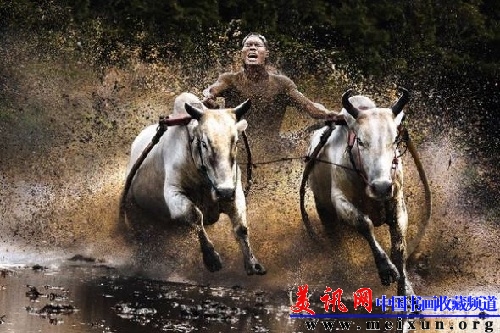 在这张摄影大赛人物类获奖作品中,一个印度尼西亚农民驾着两头水牛在烂泥中狂飙,用大赛评委乔尔·萨尔托雷(Joel Sartore)的话说,这是一个“史诗般的场面”。据作者、香港摄影师陈国雄(Chan Kwok Hung)介绍,要想赢得这些一年一度的比赛,农民们通常要付出巨大的努力,他们相信赢得比赛会在即将到来的播种季节带来好运。