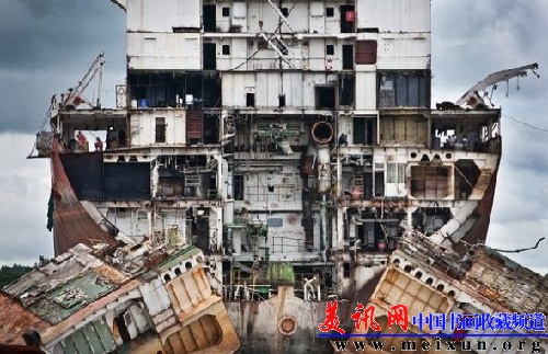 在孟加拉国的吉大港,一艘船只的内部结构暴露在外。吉大港是世界上最大的“船只坟场”之一。这张照片的作者、美国旧金山摄影师贾娜·阿森布伦纳洛娃(ana Asenbrennerova)说,虽然安全工作规范不到位以及污染严重,吉大港仍是“孟加拉国最大的工业城市之一,为当地人创造了许多工作机遇。”