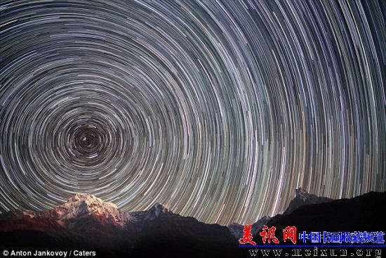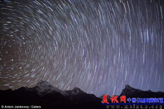 旋转的夜空:这是珠穆朗玛峰上空旋转的星空痕迹。乌克兰摄影师贾科维花费数月时间才拍到这张作品