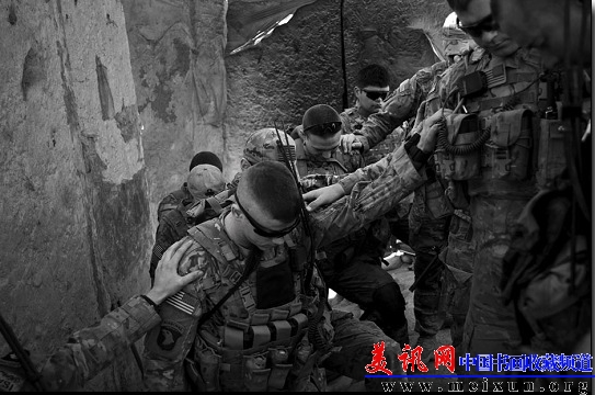 作品注释:第101空降师的士兵们在出一次艰巨任务前集体祷告,阿富汗。