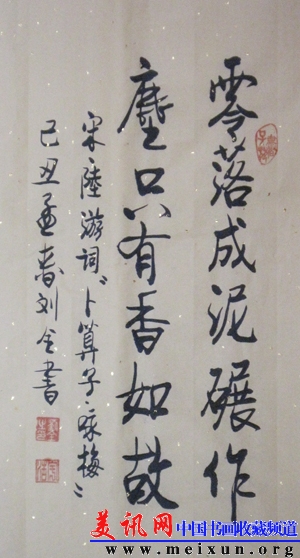 刘全,40年出生,祖籍广东,出身于书香门第,一级书画师。自小酷爱书画艺术,60余年笔耕不辍,寒暑无间。经中国书画家联谊会ISQ9000A艺术体系资质认证评审委员会审核荣获“中国书法家”称号。证书号:712015。