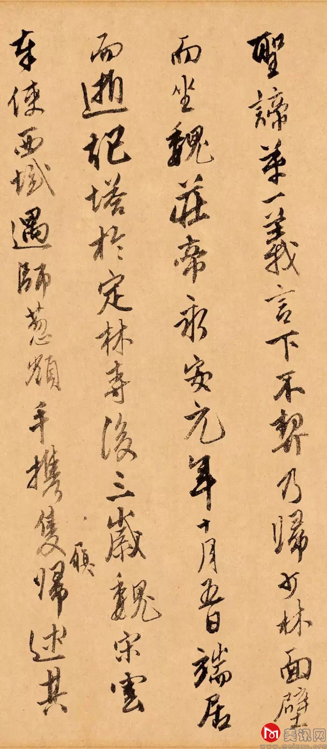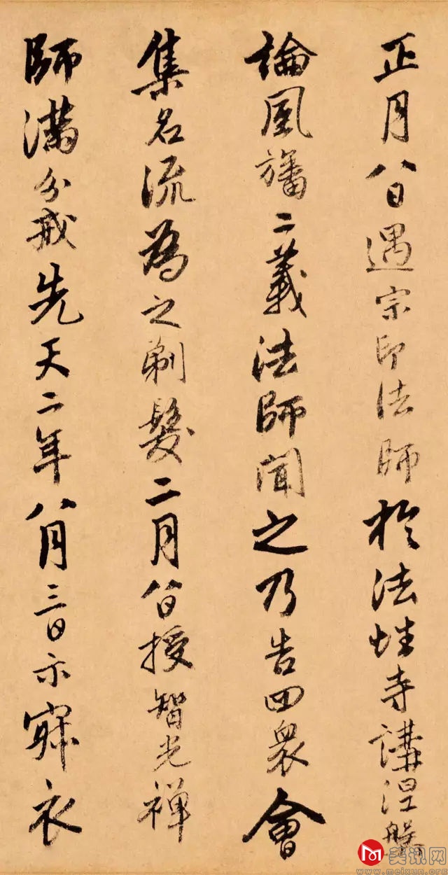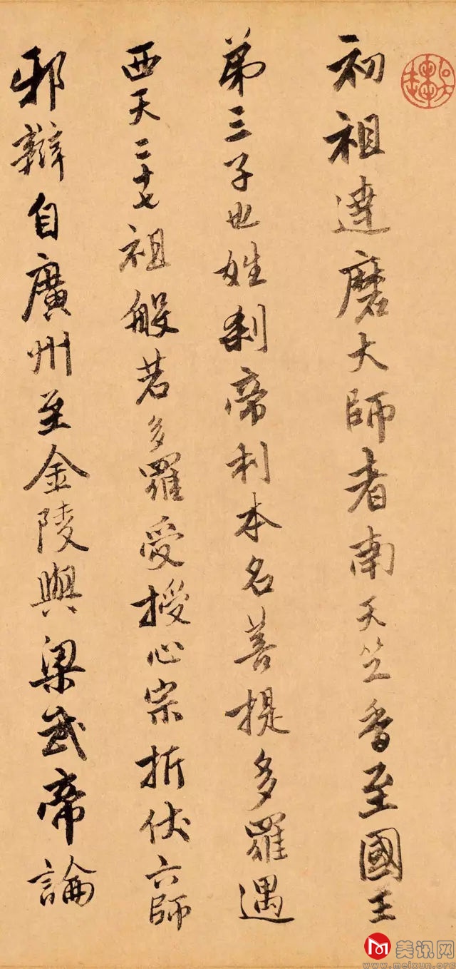 明代唐伯虎书法《题跋达摩六代祖师图》,辽宁省博物馆藏。