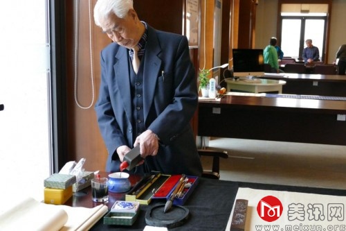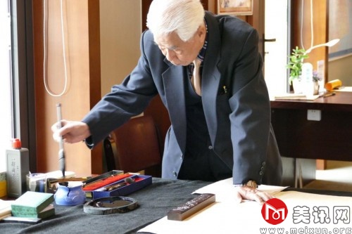 九十一岁高龄的张老师精神饱满,在创作前的准备也仍是一丝不苟地非常认真。