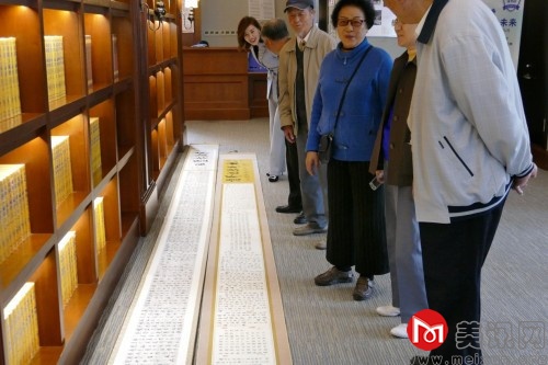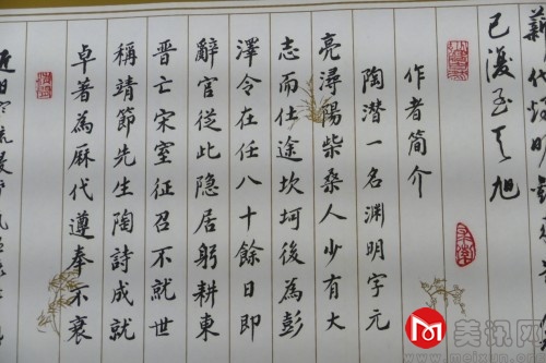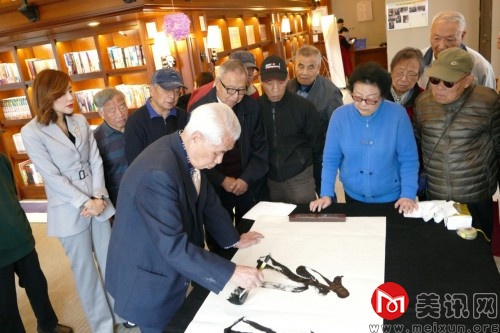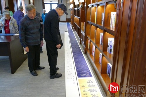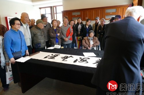 在天地健康城恬愉学堂4楼图书馆活动现场,大家共同欣赏张老师创作的墨宝。