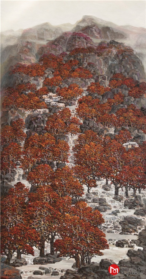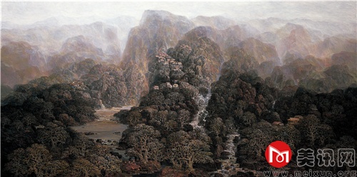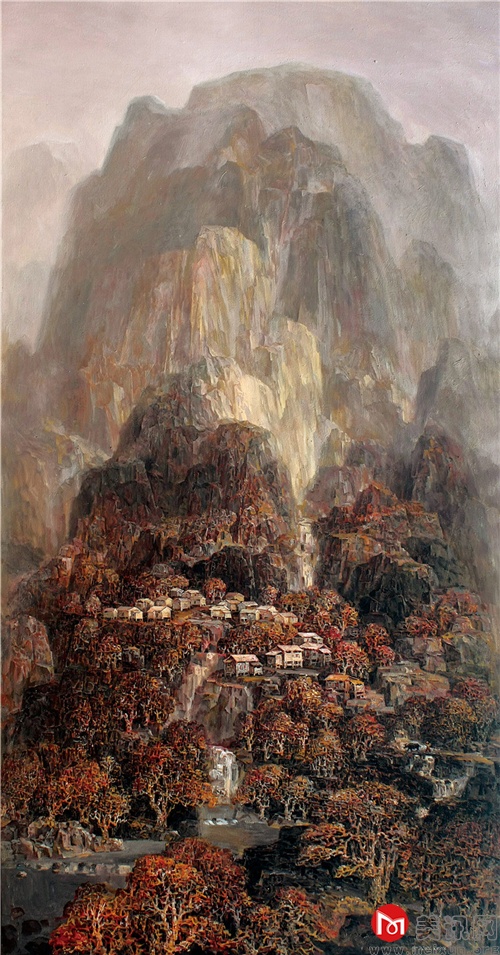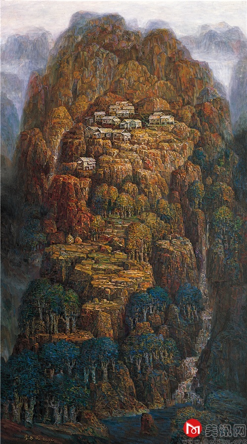 生命中,向着远山出发,为了远山以远的地方。作画时,向着远山挑战,为了生命以远的地方。远山,早已嵌入我的画作;作画,早已嵌入我的生命。画远山,即是画生命。