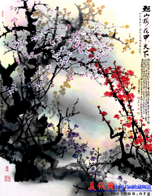 张建新(字天韵),中国当代着名画家。1954年出生于杭州桐庐。中国美术家协会会员,沈阳军区创作员,中国徐悲鸿画院秘书长、北京国画院常务副院长、中国工笔画学会理事、中国同泽书画研究院理事、中国书画研究院院士。 83年毕业于鲁迅美术学院,师从着名画家孙恩同、孙其峰,擅长梅花、山水。艺术风格苍劲灵秀,奔放洒脱,融合中西,溶汇南北,追求笔墨神韵和心境,具有鲜明的个性化笔墨语言和审美取向。