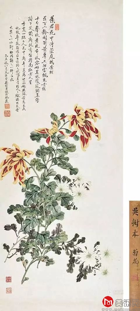 (1869-1938)字笠仙,以字行,号餐英阁主。 民国海派著名画家,字笠仙,清末江苏扬州人,擅画花鸟 , 菊花更是其最佳之作,有一金买一菊之说,创立了工笔与写意相结合的画法,在画坛上独树一帜,奠定了扬州“吴氏菊派”的基础。